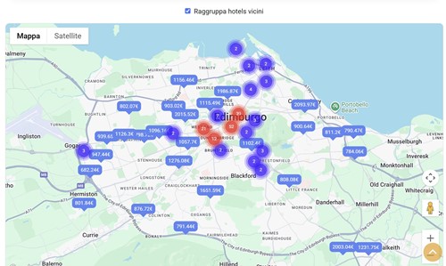 Hai provato la doppia modalità della mappa SmartGDS? Puoi raggruppare gli hotel vicini, così: Oppure così: Per cambiare modalità, inserisci o togli il flag su RAGGRUPPA HOTEL VICINI